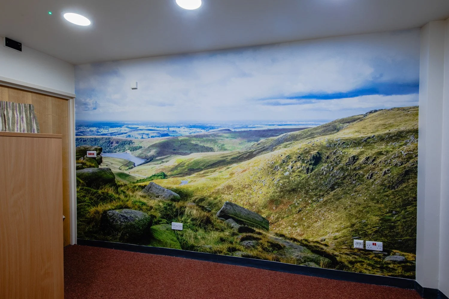Commissioned by South West Yorkshire Partnership NHS Foundation Trust and funded by charity Ey Up!, Rachael has created nature-based photographic murals aimed at transforming clinical mental health inpatient spaces into more calming and restorative environments. The project was fully co-produced with service users and staff to ensure the final murals authentically reflected lived experience and supported inpatient wellbeing.